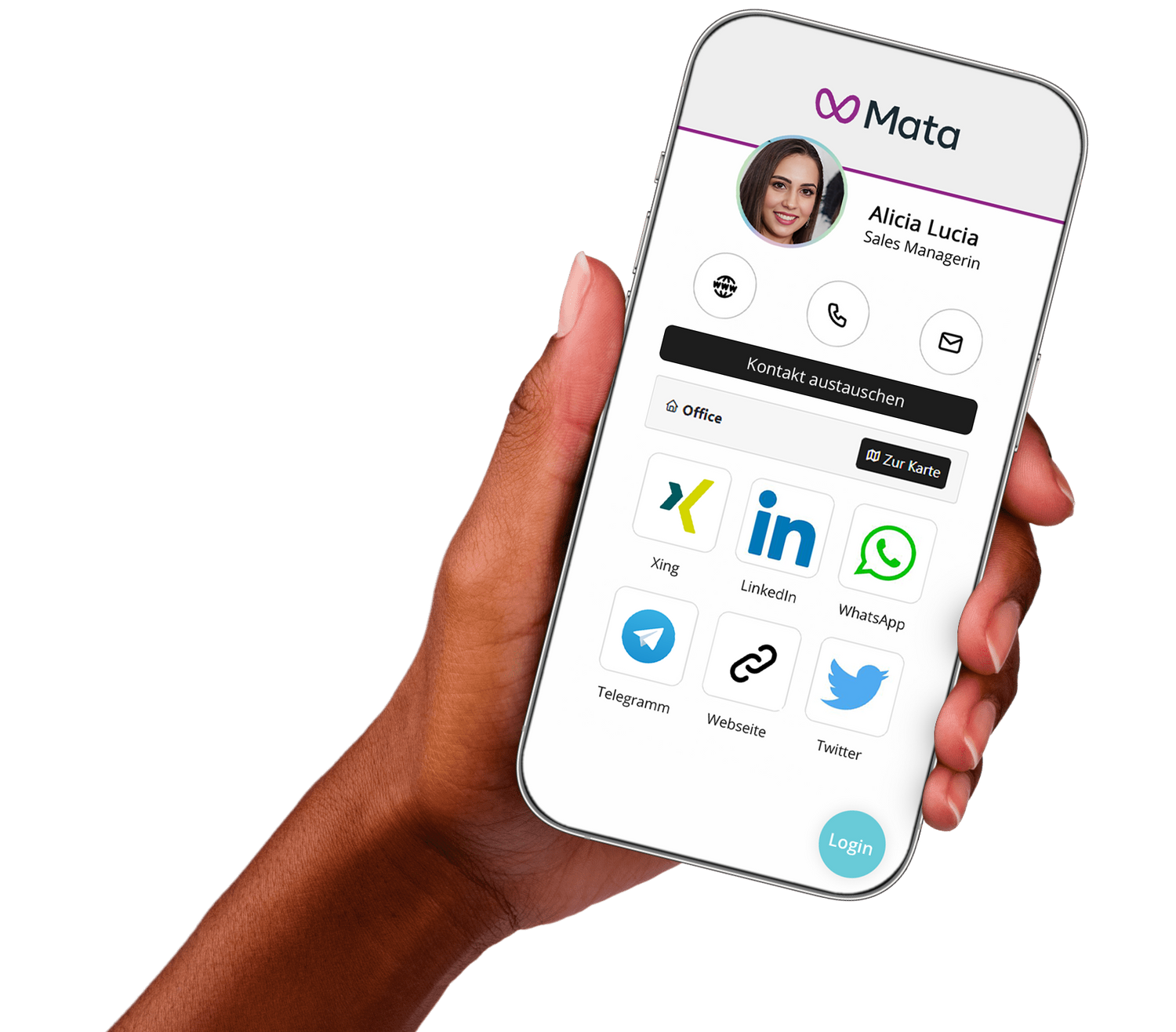 Du kannst dein digitales Profil schnell und einfach per NFC, QR-Code oder Link mit anderen teilen. Es umfasst deine gewünschten Kontaktdaten, soziale Profile, Webseiten und mehr.